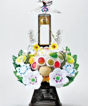 祭壇を彩る、美しい果物や缶詰の盛り合わせをご用意しています。